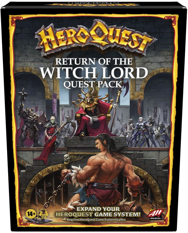 Revisit and delve deeper into the rich story of the HeroQuest dungeon crawling adventure game. With the Return of the Witch Lord expansion, players work together to destroy the Witch Lord, who hides from the light of day with his army of the undead. Players can immerse themselves in the fantasy with the stunning artwork, 16 detailed miniatures, full-colour tiles, and 10 exciting quests not seen in the initial HeroQuest Game System. (Requires HeroQuest Game System to play. Sold separately.) The game has limitless replayability, and you can also build your own quests and create your own stories. Gather friends together for an exciting night of tabletop gameplay in an epic battle of good and evil. The game is for 2-5 players, ages 14 and up. Avalon Hill and all related trademarks and logos are trademarks of Hasbro, Inc.