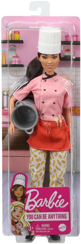 Explore a world of cooking fun with the Barbie pasta chef doll! When a girl plays with Barbie, she imagines everything she can become, and if you love pasta and cooking you can be a pasta chef! The Barbie pasta chef doll (12-in/30.40-cm) wears a colorful chef top, cute macaroni-print pants, a white chef hat and a sporty ponytail. She also comes with a pasta pot and pasta cutter that she can hold while “cooking.” Kids will love the endless possibilities for creative expression and storytelling fun. Doll cannot stand alone. Colors and decorations may vary. Makes a great gift for ages 3 years old and up.??