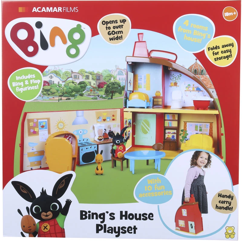 Bing House Playset features popular CBeebies characters ?” Flop and Bing! Just like the house you see on the hit TV show. Beautifully made from tough, colourful plastic. Includes two posable figures and nine accessories. Ideal for little ones, toddlers and other Bing fans. The sturdy playset is well made and makes the perfect present for children age 12 months +.
