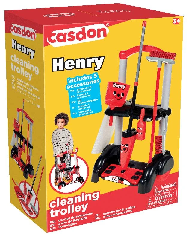 Why limit the magic of Henry to just a vacuum? We love his cheeky red face so much that we’ve decided to put it on a cleaning trolley! This Henry Cleaning Trolley is just the ticket for any Little Helpers that love pottering around the home, cleaning up as they go.