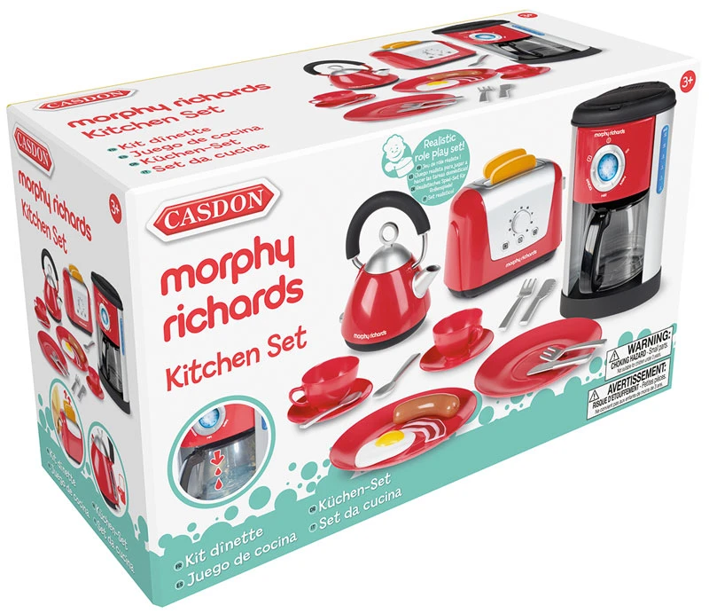 .”Orders up; it’s time for breakfast! No matter how you like your eggs in the morning, this Breakfast Set has just the ticket. Equipped with everything possibly needed to serve up a five-star breakfast (every single morning!), this set is a must-have for all imaginary kitchens. Inspired by Morphy Richard kitchen appliances, every item in this set looks just like the real thing! The refillable coffee maker pours water directly into the coffee pot, which speaking from experience, is oh-so-mesmerising! The kettle has a water-indicator level to encourage hand-to-eye coordination, and the toaster comes with ‘pop-up’ toast for an added element of anticipation! As well as including an interactive coffee maker, kettle and toaster, this set also comes with cutlery and play food. Whether you like to start your day with an English breakfast or prefer a coffee on the go, this set has everything needed to start the day on the right foot. Who knows, you might even get treated to breakfast in bed! With hidden features on every corner, no two breakfasts will ever be the same with this Breakfast Set (unless you prefer to stick to routine, of course!). No batteries required. Suitable for ages 3