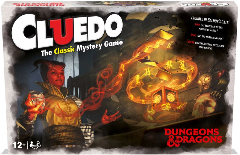 Join a Mysterious Journey… An Infernal Puzzle Box, delivered by a Hellrider of Elturel, has been stolen from the party of adventurers. Determined to reclaim their box of infernal secrets, one of Zariel’s minions has slain and secretly replaced an adventurer, unbeknownst to the rest of the members! In CLUEDO: Dungeons & Dragons, it’s up to you to determine WHO has been replaced by a devil in disguise, WHAT weapon was used in the execution, and WHERE in the Forgotten Realms the Infernal Puzzle Box could be hidden. Join Reya Mantlemorn, Falastar Fisk, Sylvira Savikas, Minsc & Boo, Lulu and Slobberchops as you journey across the board and eliminate evidence and suspects according to the clues your opponents reveal. Was Slobberchops murdered with the Horn of Blasting and is the puzzle box hidden in Twin Songs? Explore the Docks, the Wide, the Dungeon of the Dead and more in your quest across Baldur’s Gate for the truth.