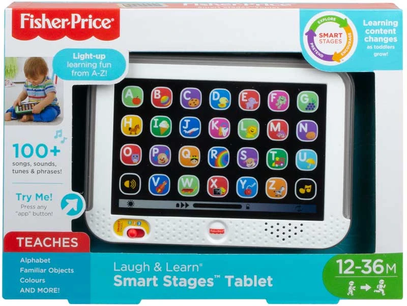 Fisher-Price Pretend Tablet Toddler Learning Toy with Lights Music and Smart Stages Educational Content, Gray, Laugh & Learn UK English Version.The Fisher-Price® Laugh & Learn® Smart Stages® Tablet gives kids their very own pretend tablet computer with 28 “app” buttons to press and activate fun lights, sounds, phrases and songs! This musical learning toy teaches infants and toddlers about letters, first words, animals and more through fun interactive play. And with Smart Stages® technology, you can switch up the learning songs and phrases as your baby grows. Little gamesters can level up playtime with the Laugh & Learn® Twist & Learn Gamer from Fisher-Price®. This interactive learning toy looks just like a grownup handheld gaming device but with toddler-friendly features including the Laugh & Learn® squad on the screen, 2 “controller” handles that twist and slide, and lots of fun buttons to press. As little ones “game,” they’ll activate multi-color lights, songs, and educational phrases that teach counting 1-10, shapes and colors.