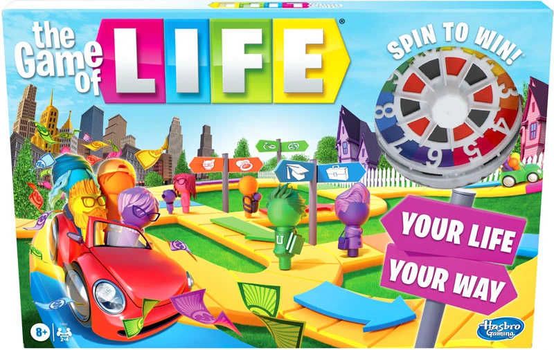 Buckle up for an exciting ride through life’s twists and turns. Pop in colourful pegs and spin to move along the gameboard as life unfolds from Start to Retirement. Every Stop! Space is a major life milestone where players spin for their fate or choose their path forward. Decide whether or not to get married, raise a family or retire early. Action cards give players options for how their adventures play out! Willing to take a risk? Invest in a number on the investment tracker and get more cash whenever someone spins that number. Spend cash wisely because the player with the most money at the end of the game wins! The Game of Life is a fun thing to do while staying at home and a great indoor game for children aged 8 and up. It makes an exciting pick for game’s night or a home-schooling activity. Hasbro Gaming and all related trademarks and logos are trademarks of Hasbro, Inc. Spin to Win is a trademark of The Trustee of the Reuben B. Klamer L.T.
