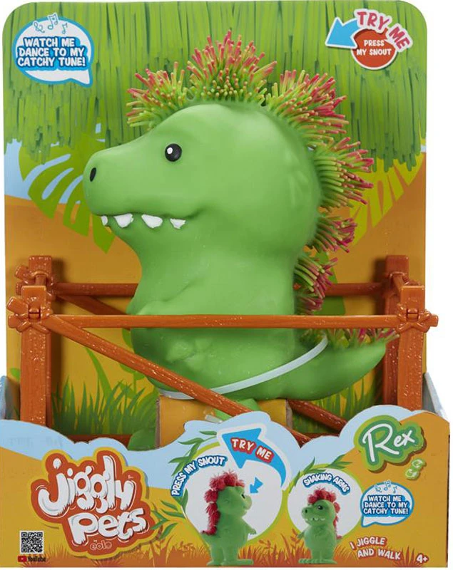 MEET REX! – Meet Jiggly Pets Rex the Dino ?”the fastest, the silliest, the Jiggliest Dino! Rex is the super cool electronic T Rex who walks, shakes, and jiggles with music and sound effects. Watch him move to the beat of his tune!