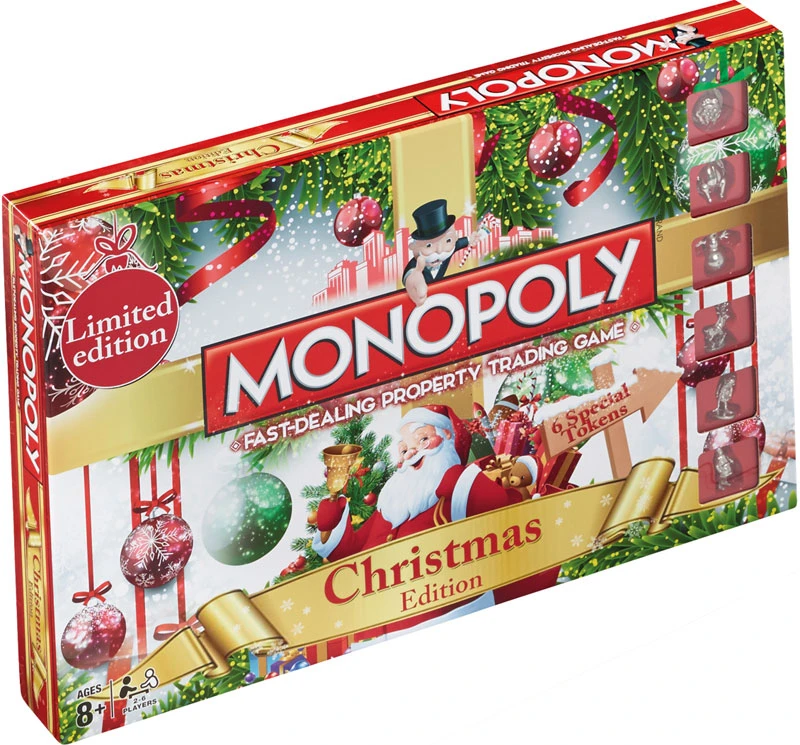 The festive season starts here with this very special Christmas Edition of MONOPOLY! Play as one of six bespoke tokens, including Rudolph, a snowman and Santa himself! Travel around the board collecting your favourite things from the season of goodwill: from Santa and his reindeer, to a full festive feast, via decorating the tree and doing your Christmas shopping, no stocking would be complete with this family favourite.