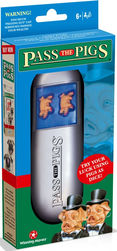 Two plump, pink piggies in the palm of your hand. What are you going to do with them? Roll them, of course! How the little porkers land will determine if you are top hog! Will you be Pigging Out or Makin’ Bacon? Only the pigs will tell! Pass the Pigs is a classic dice game that sees you roll the two plastic pigs like dice. Will you score big time with a Double Snouter, or lose all your points with a Pig Out? The pigs are specially designed to land in a number of different positions, for a perfect travel or party game that’s addictive, fast-faced and fun for all the family. The game comes complete inside a sturdy carry case with a notepad, 2 pencils and instructions on how to play. Whether you’re on holiday, at home, or travelling somewhere new, the game is easy to tidy away and store for next time. You can take as many turns as you dare, but remember: the more throws you make, the more likely you are to land an unlucky position and go all the way back to zero! Try your luck with Pass the Pigs.