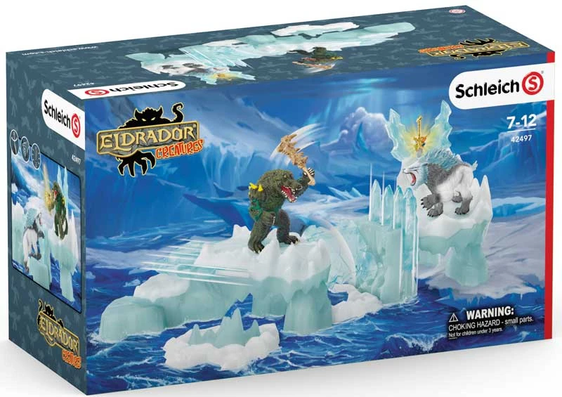 In the Attack on Ice Fortress from Schleich® Eldrador® Creatures, nasty obstacles, a mighty drawbridge and a secret hiding place await the battle crocodile from the jungle world as he ventures deep into the ice. His goal: to get the super weapon for himself! But the sword lies hidden beneath a thick shield of ice and is fiercely guarded by the ferocious saber tooth tiger …
