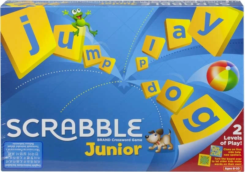 Junior Scrabble is letter-matching fun for your little one! Kid-sized words and colourful pictures make it fun to match letter tiles to words on the grid. Players flip over the game board for an advanced game that involves creating their own words. When all of the tiles are the board, the player with the most chips wins. For 2 to 4 players.