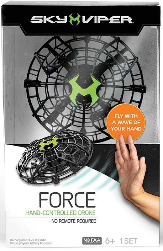 Sky Viper Force Gesture-controlled Drone is a drone you can play with – without using a remote control! With motion sensors all over the drone, it can sense its surrounding. Once charged, toss the drone into the air for it to power on – it will hover in the air! With the movement of your hands towards the drone, you can push the drone to go in a certain direction or slow down to a stop. Start with your hand over the drone and move it around until your hand is below the drone for a neat trick! A whole new way to fly a drone!