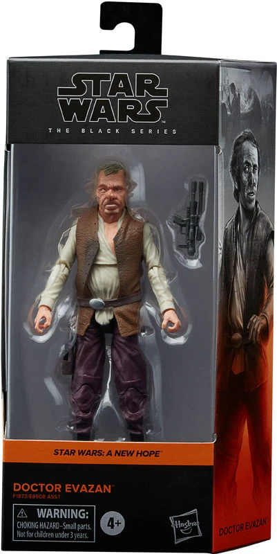 A grubby, scarred smuggler from Alsakan, Cornelius Evazan was once a promising surgeon, but became notorious for conducting cruel medical experiments. Children and collectors alike can imagine the biggest battles and missions in the Star Wars saga with figures from Star Wars The Black Series! With exquisite features and decoration, this series embodies the quality and realism that Star Wars devotees love. Star Wars The Black Series includes figures, vehicles and roleplay items from the 40-plus-year legacy of the Star Wars Galaxy, including comics, films and animated series. (Additional products each sold separately. Subject to availability.) The 15-cm-scale Black Series figure is detailed to look like the Doctor Evazen character from Star Wars: A New Hope, featuring premium detail and multiple points of articulation. Star Wars products are produced by Hasbro under licence from Lucasfilm Ltd. Hasbro and all related terms are trademarks of Hasbro.